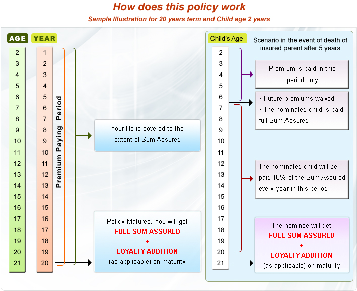 • At the end of policy term once again full sum assured is paid along with Loyalty addition